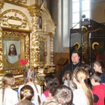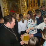 В рамках состоявшихся бесед, священники рассказали приходящим в храмы о Крестном знамении, об устройстве храма и о тех людях, которые своим усердием перед Богом в исполнении Заповедей, удостоились святости. Особенно живо и с интересом ребята восприняли повествование о том чуде, которое совершил Архистратиг Божий Михаил в Хонех (Колоссах), а также историю появления иконы «Спас нерукотворный». Перед этим святым образом паломники молились о том, чтобы Господь даровал духовного зрения, дабы безошибочно различать в жизни – что такое хорошо, а что такое плохо.