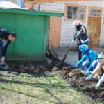 На радость, прихожан храма в честь чуда Архистратига Михаила в Хонех города Новозыбкова, студенты-волонтёры отряда «От сердца к сердцу» помогают озеленять прилегающую к храму территорию.