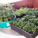 Весной, как только отцветут первоцветы, на клумбы высаживаем рассаду сальвий, бархатцев, львиного зева, целлозий, анютиных глазок. Вазоны заполняем петуниями и пеларгониями. Часть семян и рассаду цветов покупаем, часть рассады выращивают и приносят прихожане.